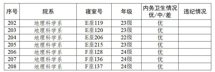 为进一步加强学生寝室管理,营造安全、整洁、舒适的住宿环境,党委学生工作部(处)不断完善学生寝室安全卫生月度检查机制。9月3日-4日,党委学生工作部(处)对主校区11栋本科生宿舍楼开展安全卫生检查,现将检查工作开展情况及检查结果通报如下: