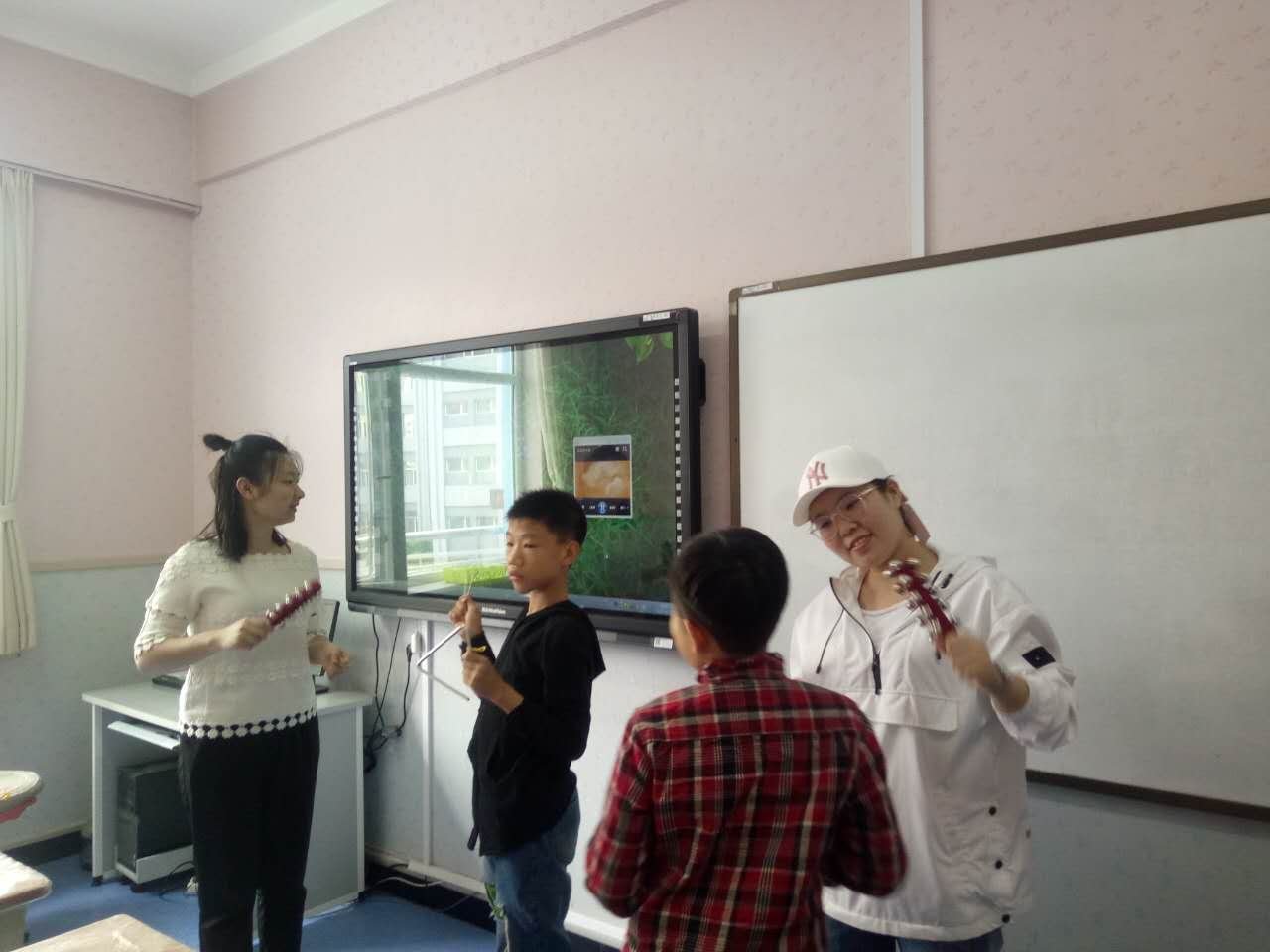 本次活动的教学内容是教授演唱《找朋友》。志愿者根据班型的不同,自觉地分配到各个班级去教唱儿童,部分志愿者根据所掌握的奥尔夫教学方式来教授儿童们来演唱儿歌,希望通过声乐课的教学,能使得孩子们感受到快乐和喜悦。