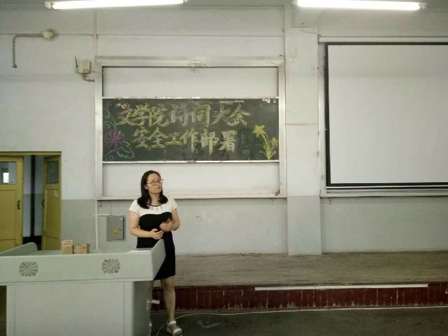文学院于2017年6月8日晚5:30在新合203教室举办了文学院诗词大会安全工作部署大会。本次大会旨在确保文学院诗词大会的顺利举办,要对危险多一份防范,对纪律多一份严肃。