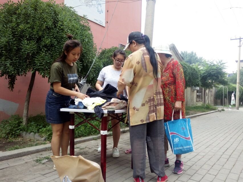 2017年6月20日2点整,身着数学学院院服的9名志愿者高举“润德”旗帜出现在前往立新社区的街道上。到达社区后,杜书记热情的接待了志愿者们,并为捐赠活动提供桌椅等工具。活动伊始,毫无经验的志愿者们手足无措,路过的社区居民也只能从宣传板上的寥寥数字了解本次活动的信息,前期活动开展的并不顺利。实践部决定对活动进行整体调整,将志愿者分为两组,一组负责向居民介绍活动,另一组负责分发写有社会主义核心价值观的宣传条。社区居民了解到此次捐赠活动是免费赠送,纷纷过来挑选自己需要的衣服,活动现场热闹的像个小商场。一位衣着朴素的阿姨来到捐赠桌前,反复看着捐赠的衣服不说话,原来阿姨想为自己的女儿挑几件衣服又不好意思,志愿者们了解情况后主动给阿姨挑选适合的衣服,阿姨真诚的给志愿者们竖起了大拇指。志愿者们向每位居民发放社会主义核心价值观的宣传条,让他们受益的同时提升自身的素质、涵养。两个小时的时间,20件衣物全部捐出,社区居民对志愿者的热情态度提出赞扬,并对数学与信息科学学院的捐赠活动表示深深感谢。