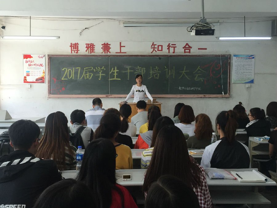 随着秋天脚步的临近,我们迎来了崭新的一学年。新学期也是新征程的开始。数学与信息科学学院为了加强学生干部的工作能力,提高学院学生干部队伍的整体水平,2017年8月30日上午11点25分于第二教学楼204教室,召开了“2017届学生干部培训大会”。出席本次会议的有数学与信息科学学院书记边娜、学工办主任刘艳丰、辅导员张成相老师及陈威老师。