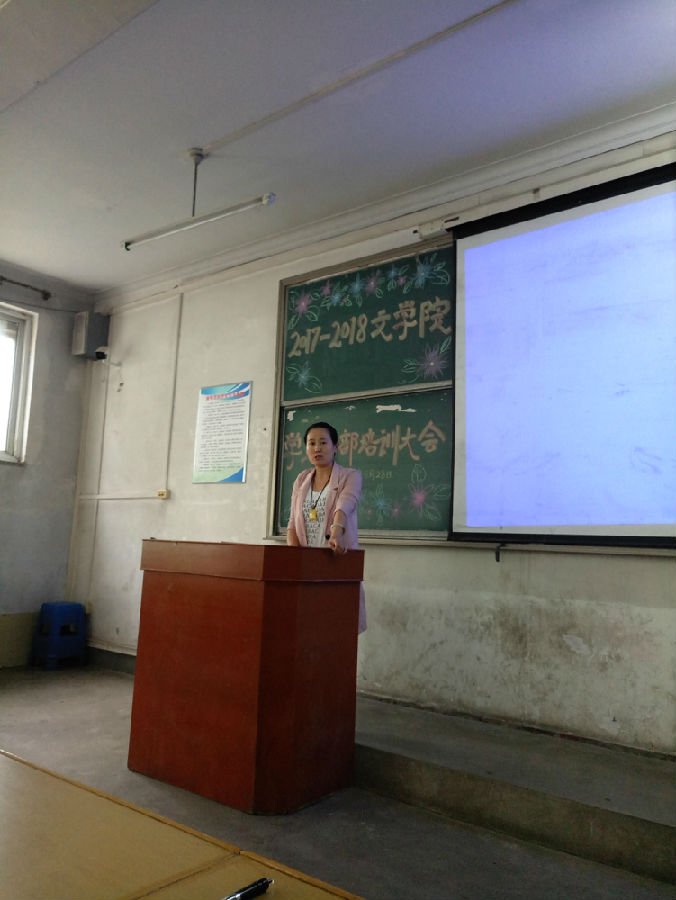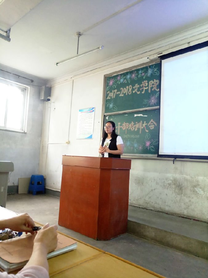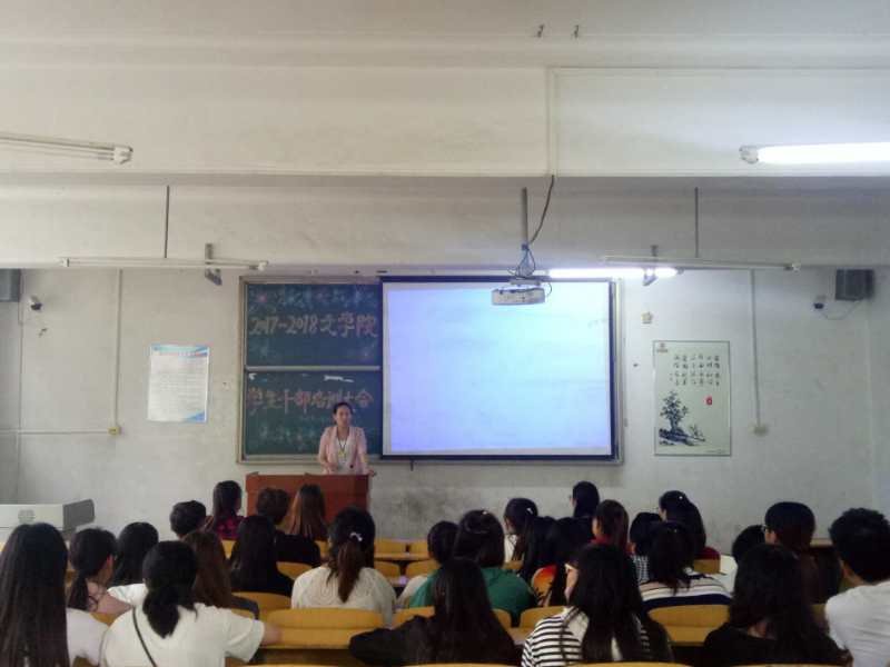 为提高学生干部队伍的政治素养和工作能力,进一步发挥学生干部的先锋模范带头作用,贯彻落实“创城”和“五创”精神,8月28日下午14:00,文学院在第一教学楼225开展了2017-2018学年度第一学期学生干部培训大会。出席此次会议的有文学院党组织副书记王雪、学工办主任王向亮和辅导员刘希坤。
