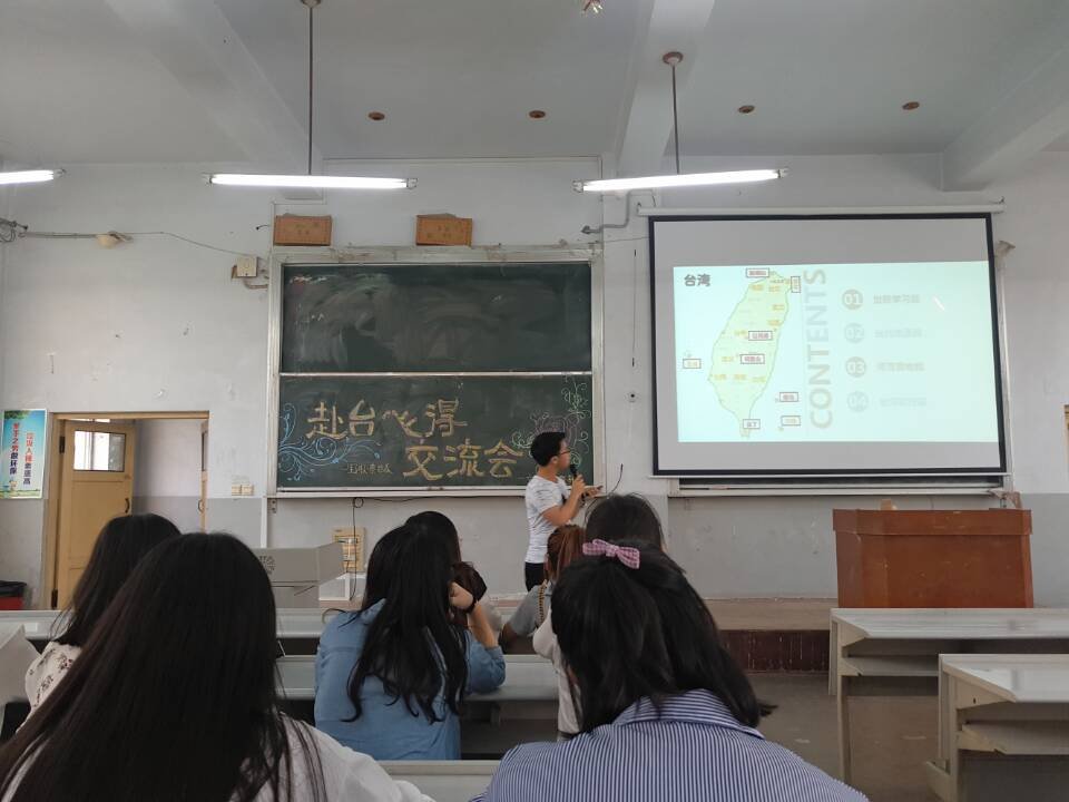 有人说读万卷书不如行万里路,为了能够让学生更多的了解台湾的学习与生活,从多元化的角度解读不同教育模式下的学习现状,2017年6月12日晚5:30,文学院于新合201教室举办“赴台学习心得分享会”,我院赴台学习交流的142班蔡侍森为全院师生做了一次学习经验交流会。